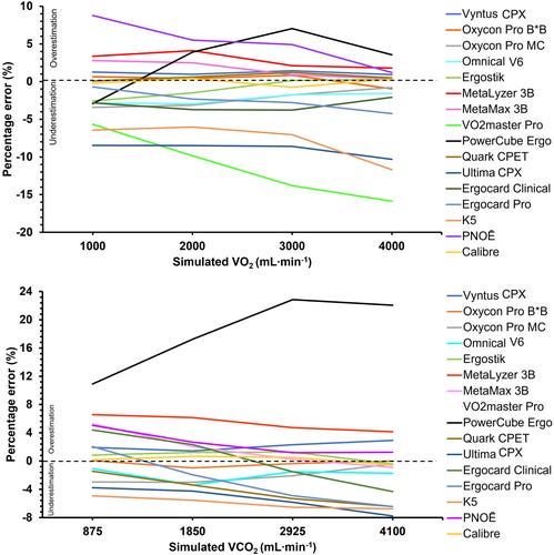 We evaluate the accuracy of 15 popular cardiopulmonary exercise testing CPET systems to assess respiratory variables, substrate use, and energy expenditure during simulated exercise.