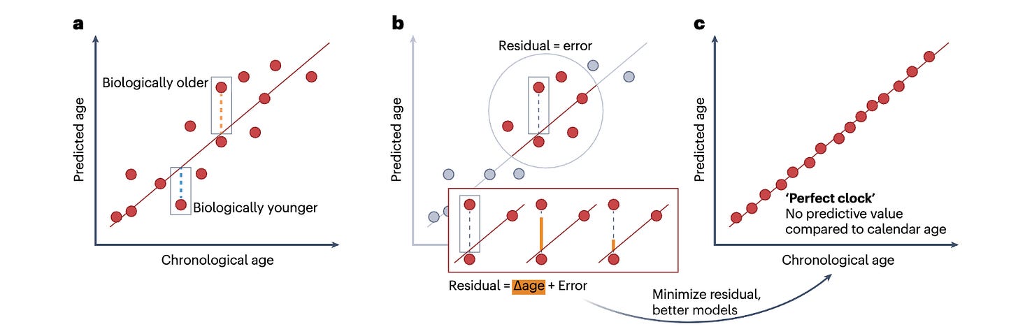 This article proposes a new way to think about biological age: not simply as a number that estimates how old someone’s body looks, but as a “risk-equivalent age” that reflects an individual’s position on a continuum of clinically meaningful risk for health outcomes. Traditional aging clocks that predict chronological age often have limited clinical utility. By reframing biological age as a dynamic, risk-based vital sign, the authors argue aging biomarkers (like epigenetic, proteomic, and other clocks) can be more directly tied to meaningful outcomes such as morbidity and mortality, and thus better integrated into clinical practice for assessing patient risk and guiding interventions.