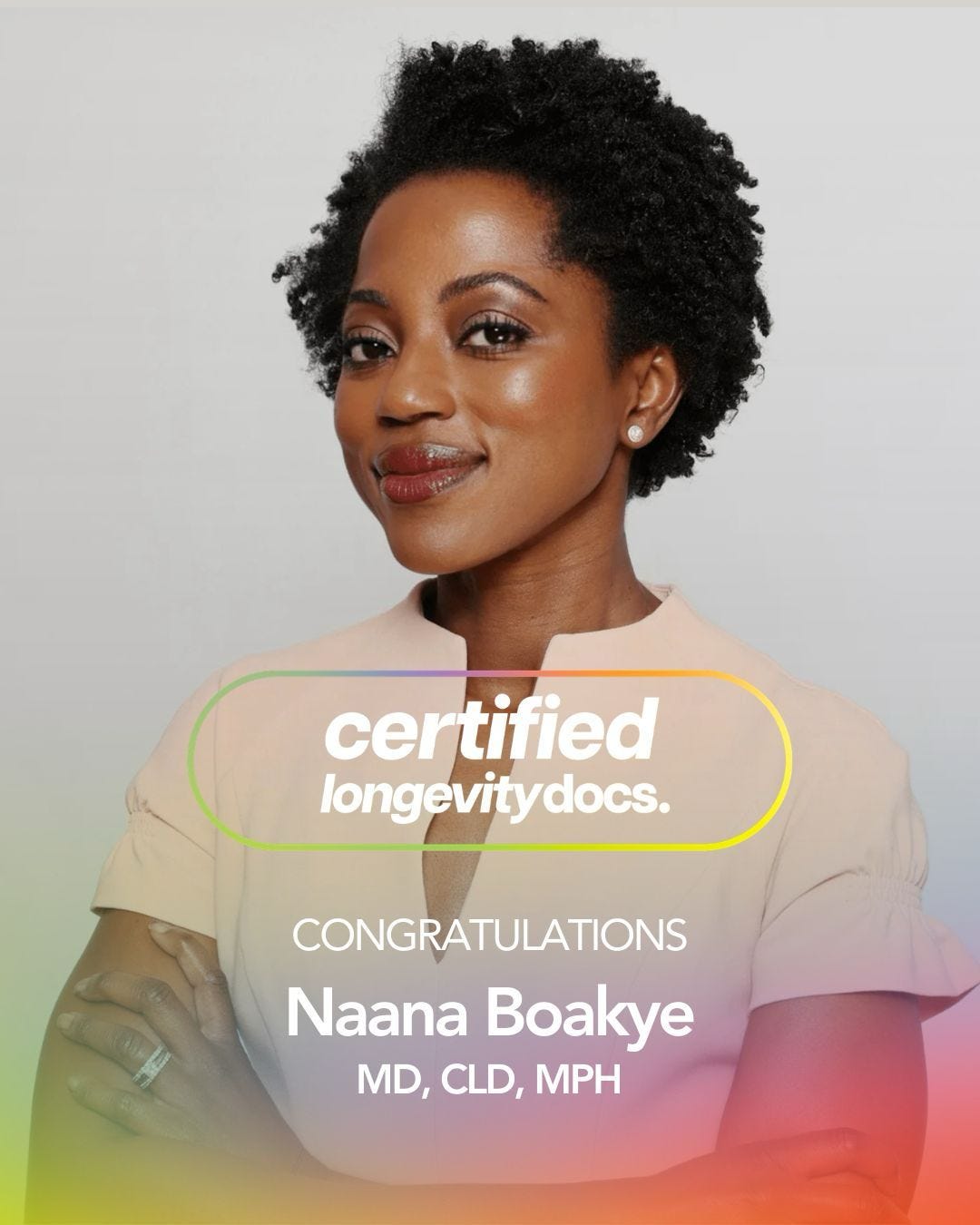 Dr. Naana Boakye, MD, CLD, MPH is now the first-ever Certified LongevityDoc in the world.