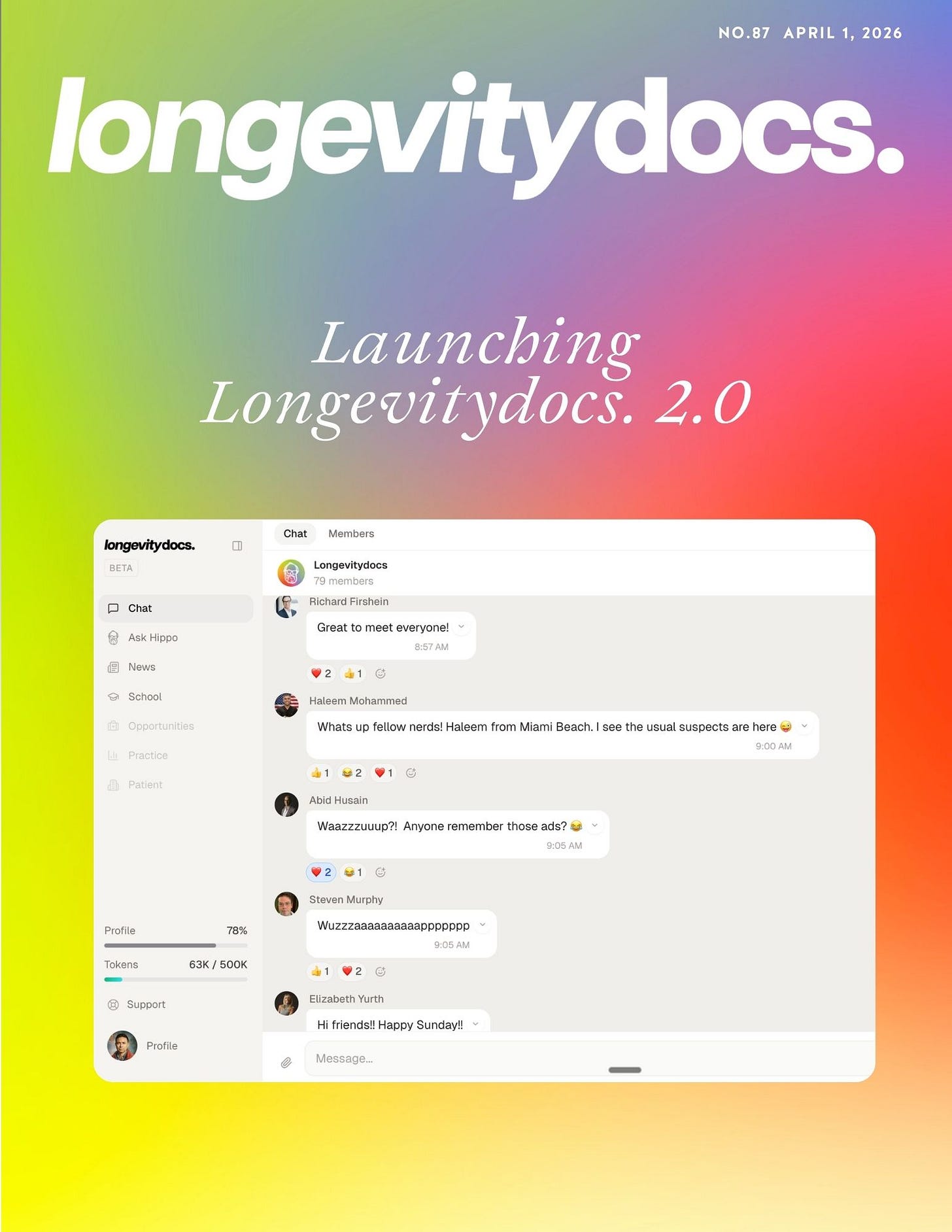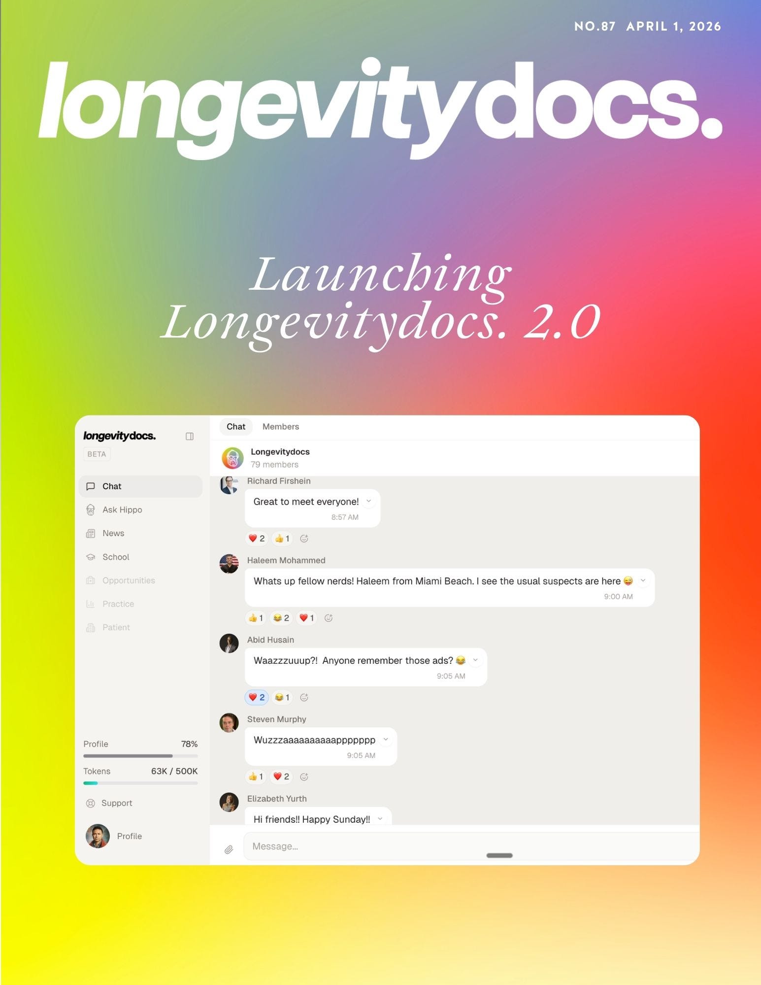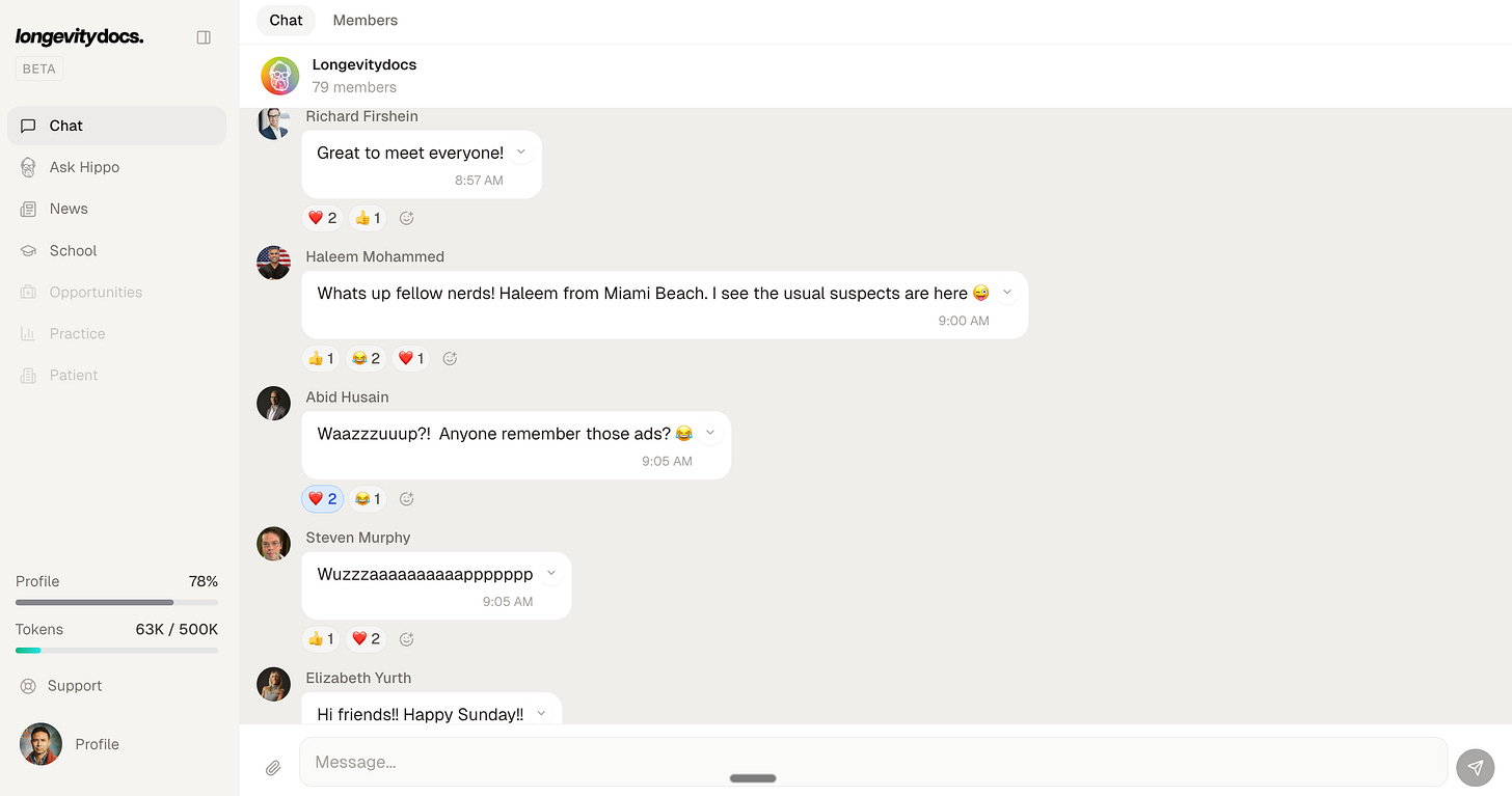 The beta is open. Not to everyone yet, intentionally. We started with our earliest members, our most active contributors, and our Certified Longevity Docs candidates. The OGs who showed up when this was still just an idea.