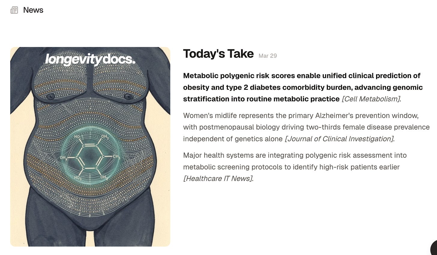 Longevity medicine is moving fast. Every week, we bring you what matters: clinical insights, research signals, and perspectives from 600+ physicians across 50+ countries. One newsletter. Built for the physicians shaping this field.