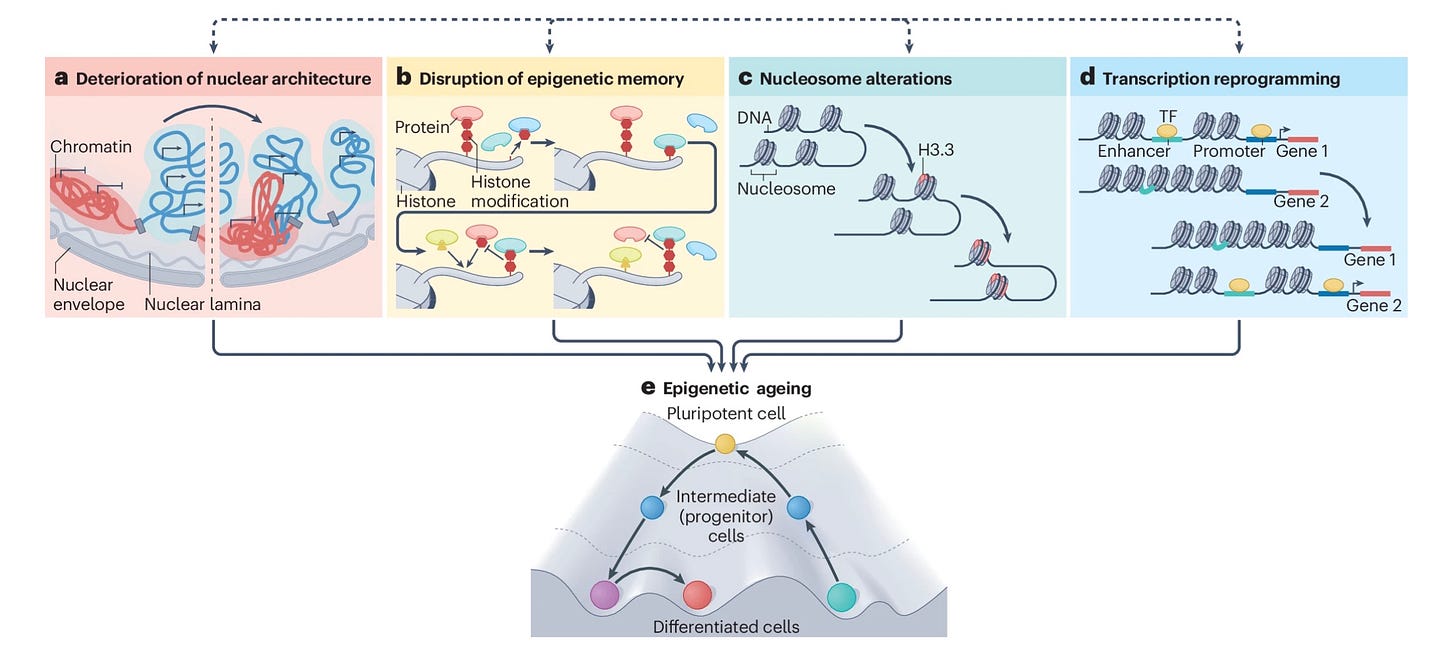 This framework reveals why therapeutics targeting epigenetic systems have consistent effects across multiple model systems and ageing phenotypes. The interconnected organization of chromatin regulation mechanisms creates concrete therapeutic targets to restore regulatory coherence. By providing mechanistic clarity on how epigenetic dysregulation drives ageing phenotypes, we aim to enable rational design of therapeutics that target the epigenetic systems that fail during ageing, rather than individual molecular defects. Nature Reviews