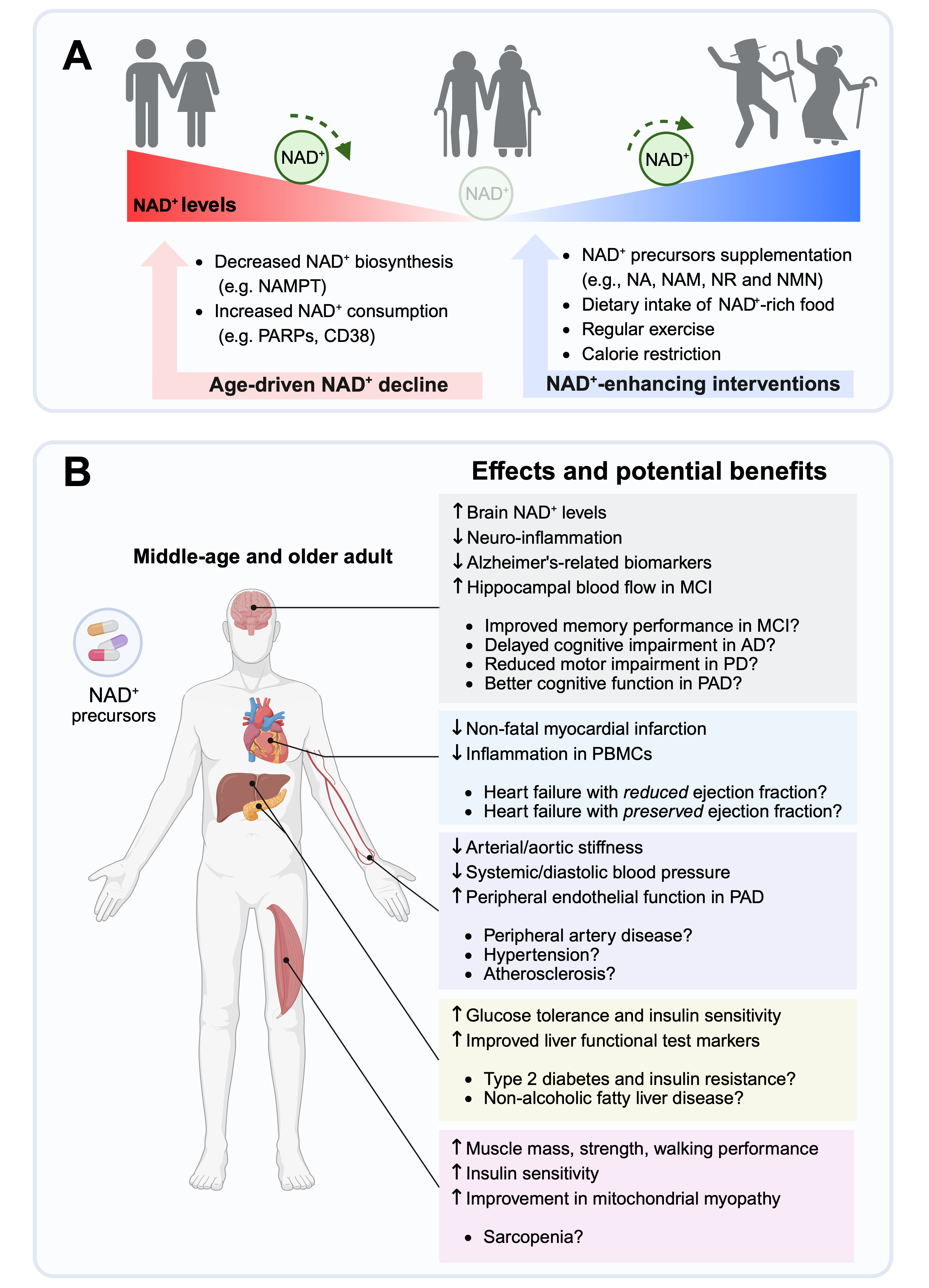 There is no strong evidence yet that NAD+ supplements broadly “slow aging” or improve hard outcomes like mortality, major CV events, or dementia. Geromedicine