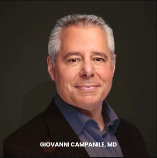 Dr. Giovanni Campanile is a quintuple board-certified cardiologist and a pioneer in integrative cardiology, combining conventional heart care with holistic, lifestyle-based approaches, focusing on prevention and disease reversal through nutrition and integrative therapies. He's known for directing significant cardiac rehab programs (like the Ornish program), researching at the Framingham Heart Study and serving as a medical writer. Dr. Campanile has published scientific papers in major cardiology journals that have advanced our understanding of the effect of high blood pressure on heart health. He also started the very first Integrative Cardiology practice in the nation.