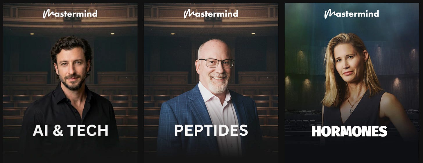 3 Masterminds. 3 topics reshaping longevity practice: AI & Tech, Peptides, and Hormones - featuring the dozens of faculty. Trusted by hundred of physicians