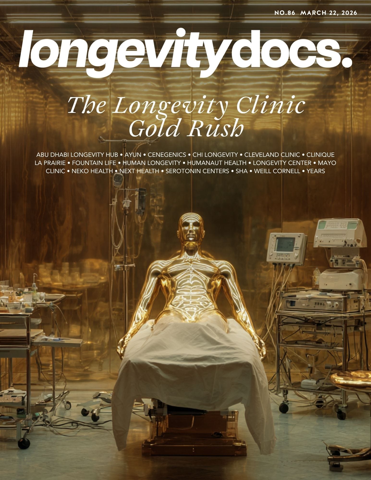 Weill Cornell launched a 12-month Longevity Medicine Program. Northwestern opened the Human Longevity Clinic. Mayo Clinic is building its own program. Sheba Medical Center became the world’s first academic institution with a dedicated longevity center. Abu Dhabi created the first government regulatory framework for longevity medicine on the planet.