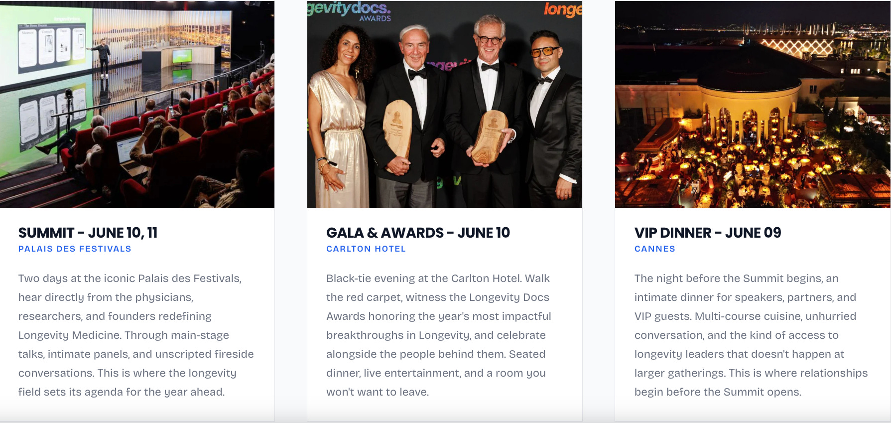 Jun 9–11 — Longevity Docs Cannes 2026”: Awards & Summit